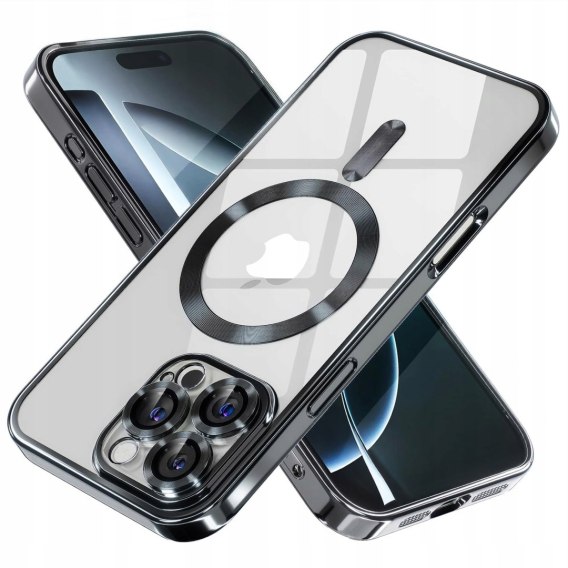 Etui ProFlo do iPhone 16 Pro Czarne Ramki Transparentne Magnetyczne z pełną ochroną aparatu.