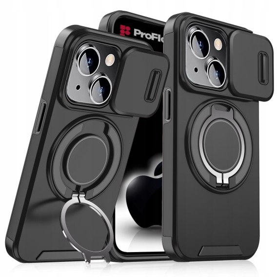 Etui do iPhone 14 i IPhone 13 Pancerne Czarne Uchwyt Osłona aparatów Case