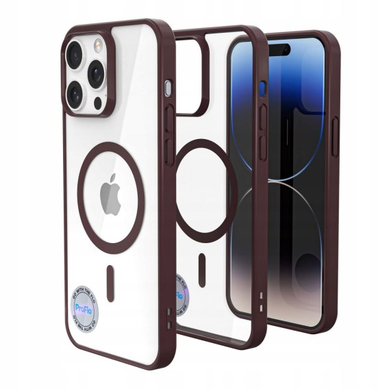 Etui do iPhone 15 Pro bordowe silikonowe ramki, przezroczyste do Magsafe